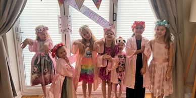 nails, hair, face glitter, glitter tattoos, foot baths & use of gowns and headbands